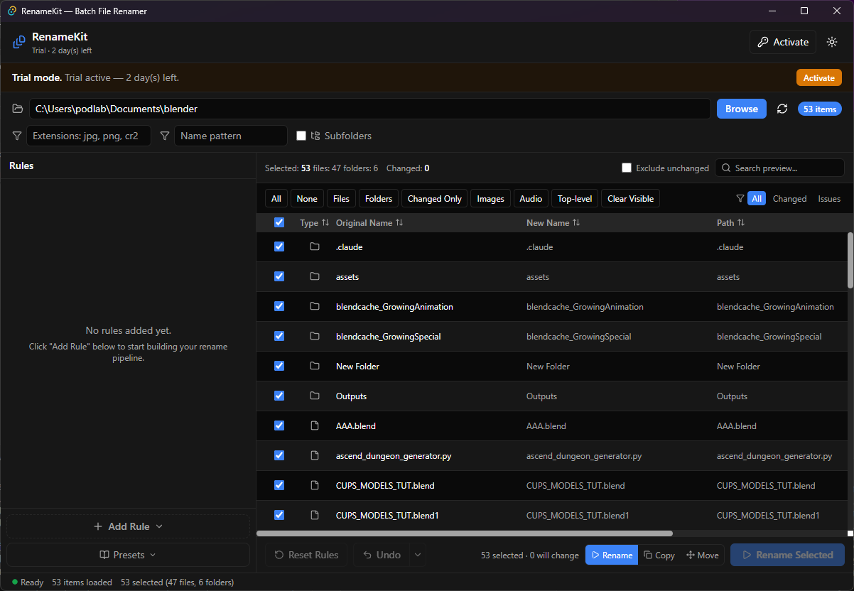 A rule library that scales from quick cleanup to advanced rename pipelines